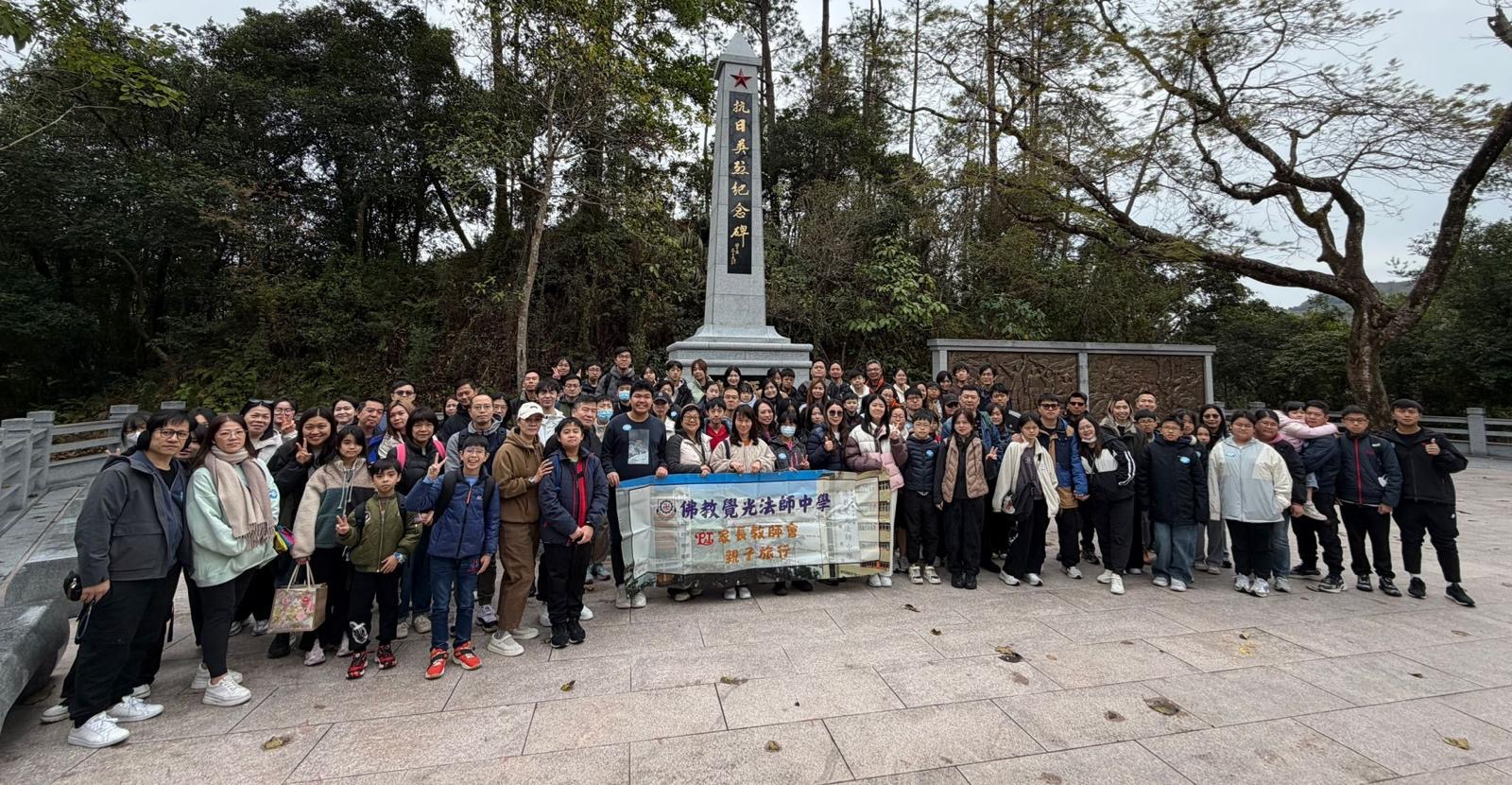 家教會親子旅行日於2月1日舉行,這次我們帶領家長和同學們一同前往烏蛟騰烈士紀念碑,在輕鬆氛圍中學習抗日歷史,及後前往沙頭角農莊製作茶果和燒烤。是次行程結合歷史教育、親子互動與自然樂趣,讓大家度過了充實而有意義的一天。