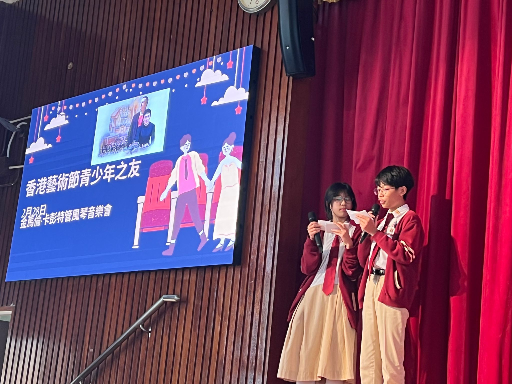 本校於2月10日下午三至四時於禮堂舉行年度音樂會,藉此機會展示同學在音樂方面的學習成果。是次音樂會表演項目十分豐富,包括:合唱團、中樂團、流行樂隊、中樂獨奏、古箏合奏、聲樂演出共十項,同學的演出十分出色,繞樑三日。